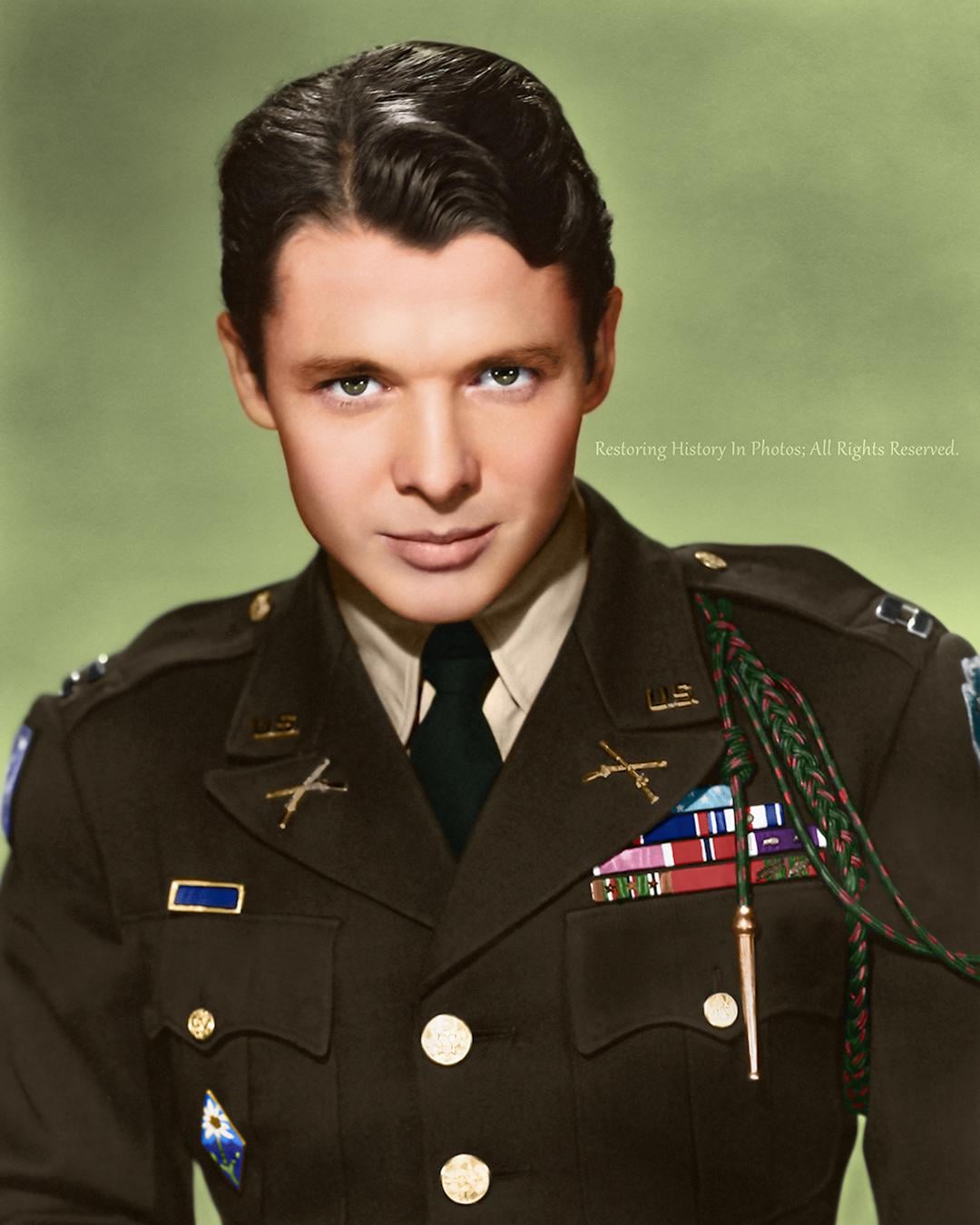 [Colorized] photo of Audie L. Murphy: WWII’s most decorated soldier, Hollywood actor, writer, and advocate for mental health awareness. Taken in the 1940s. [1080 x 1350]
