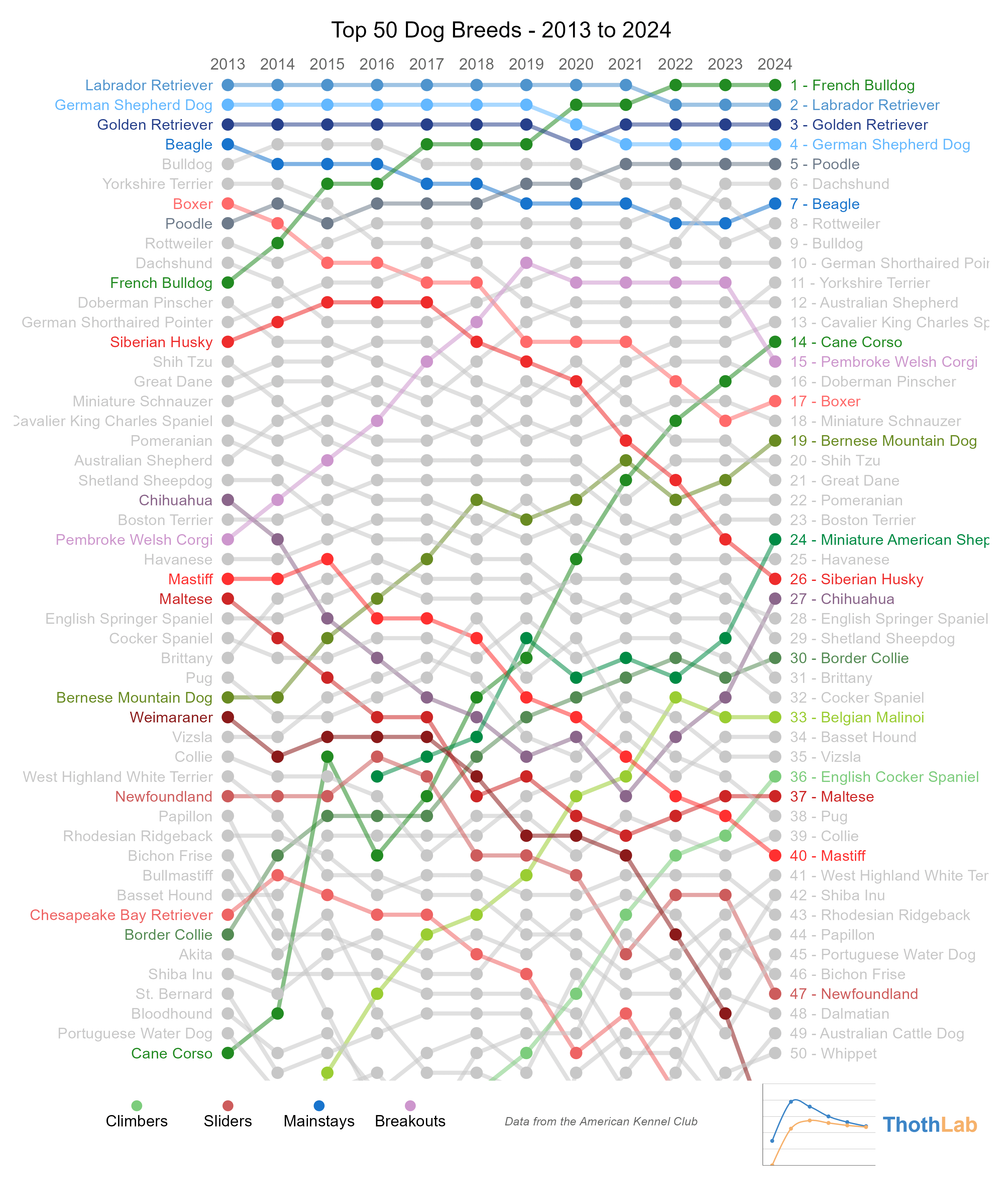 Great Danes being at 21 amazes me, they’re not very popular at all in the UK these days.