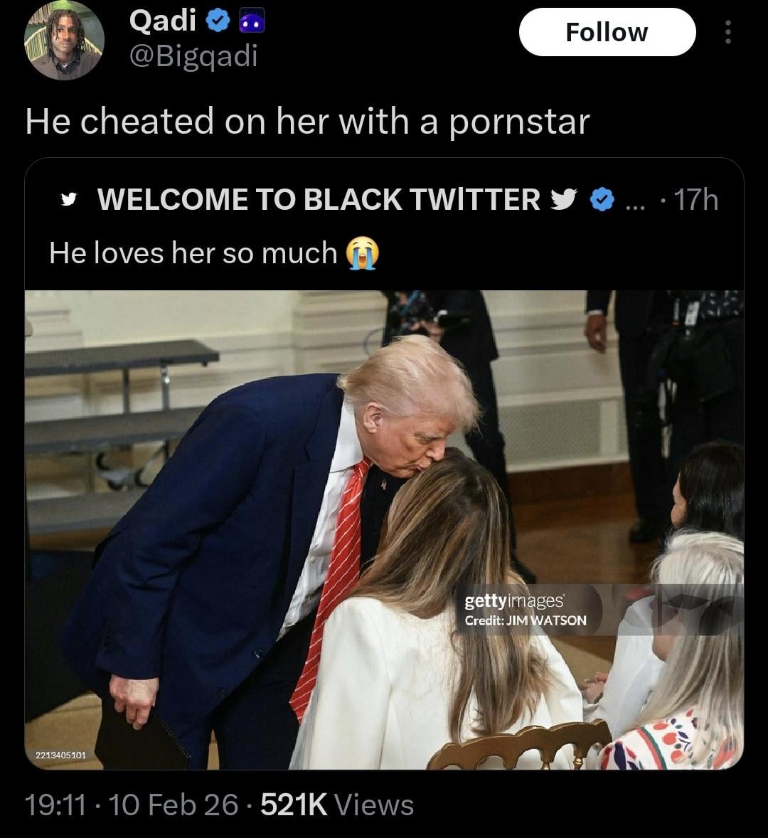 She’s in it for the bag she only had the child to secure everything she’s waiting for him to die and with them bruised hands he been putting make up on and them cankles he has she knows he ain’t lasting to much longer he might get through this presidency