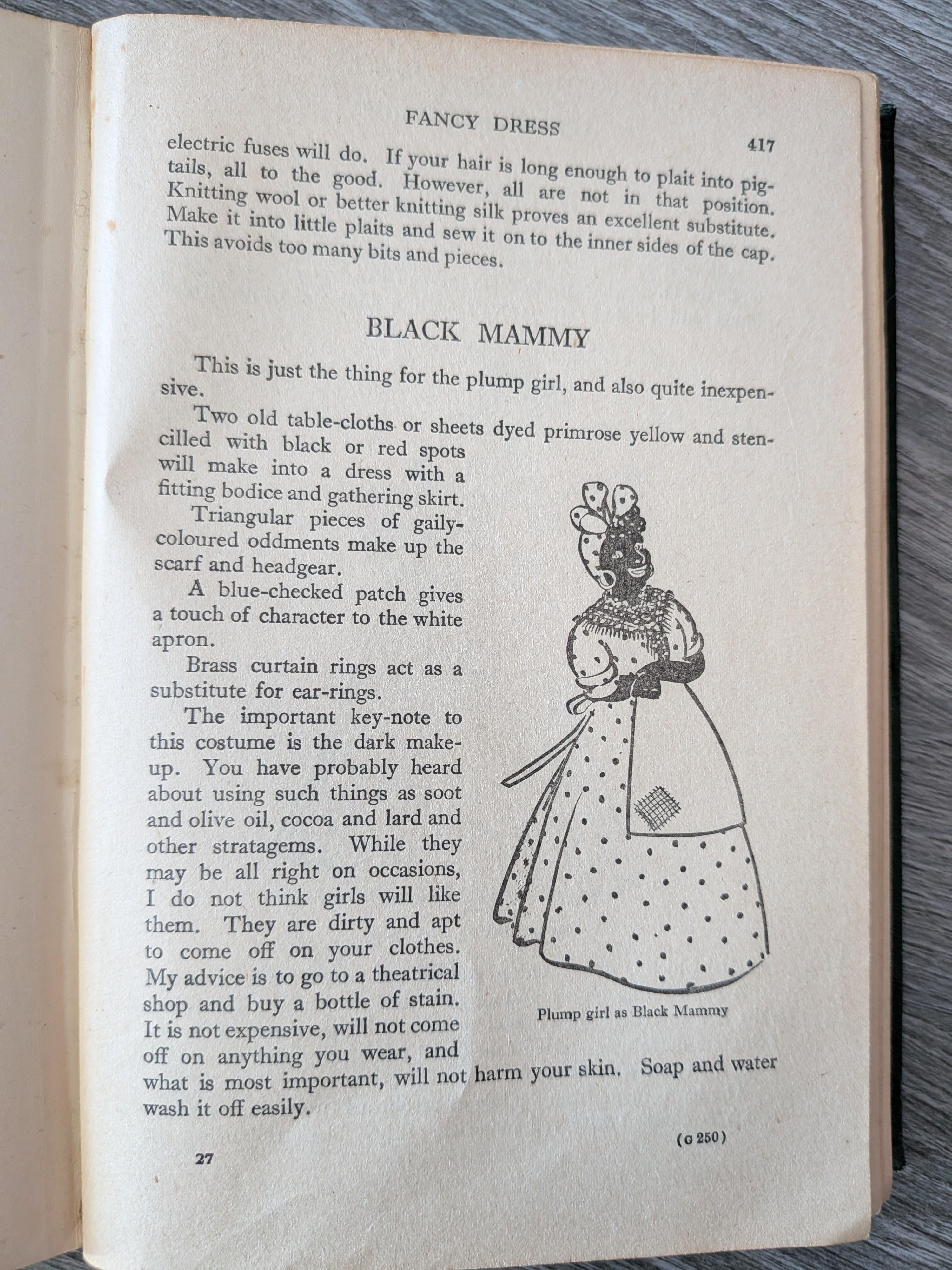 I bought a “Girls Companion” book from the 1940s and it has tips on how to do blackface for a “Mammy” costume
