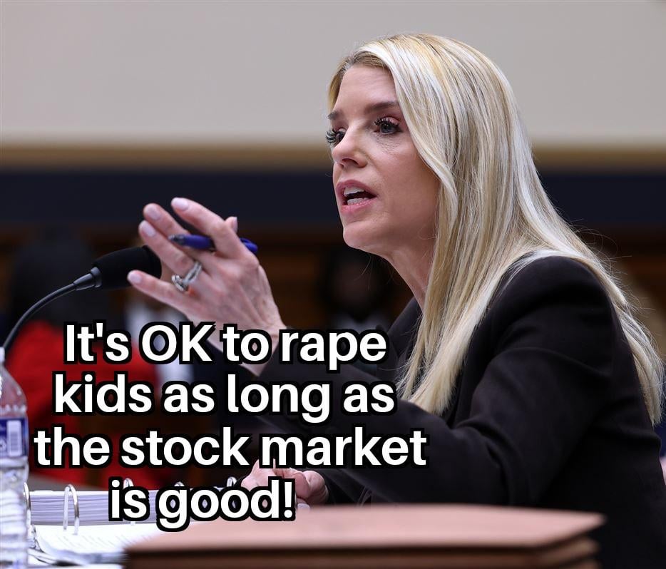 Pam Bondi- we all see you protecting the Trump GOP fascist regime and doing Nothing against Pedophilia and sex trafficking…