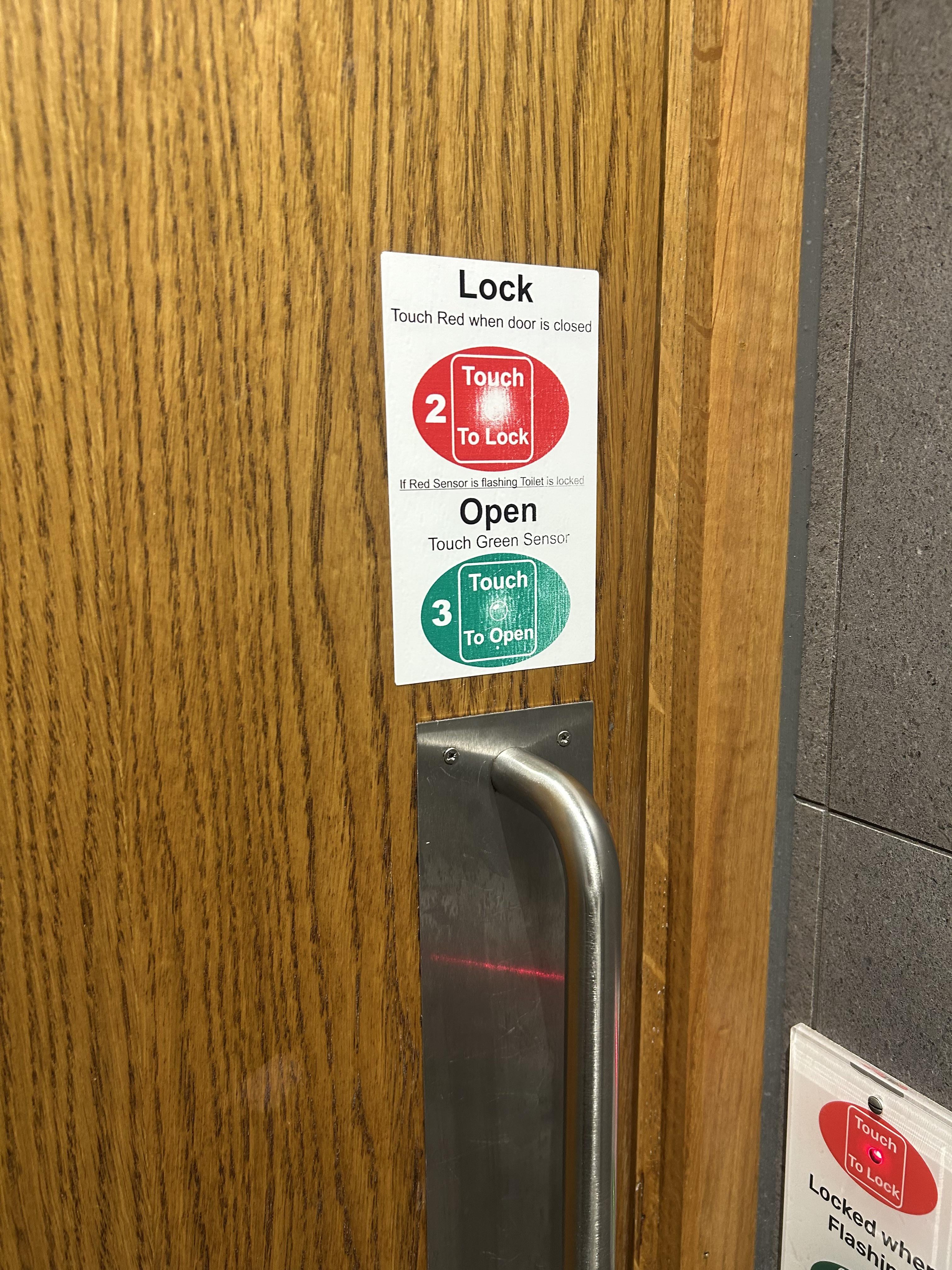I could see that mistake. At first glance from this photo it does really look like it’d could be a real switch. I don’t tend to stare real close at doors as I’m walking up to them. Putting the sticker above the real switch may have been the better option. Or it might be about same, lol.
