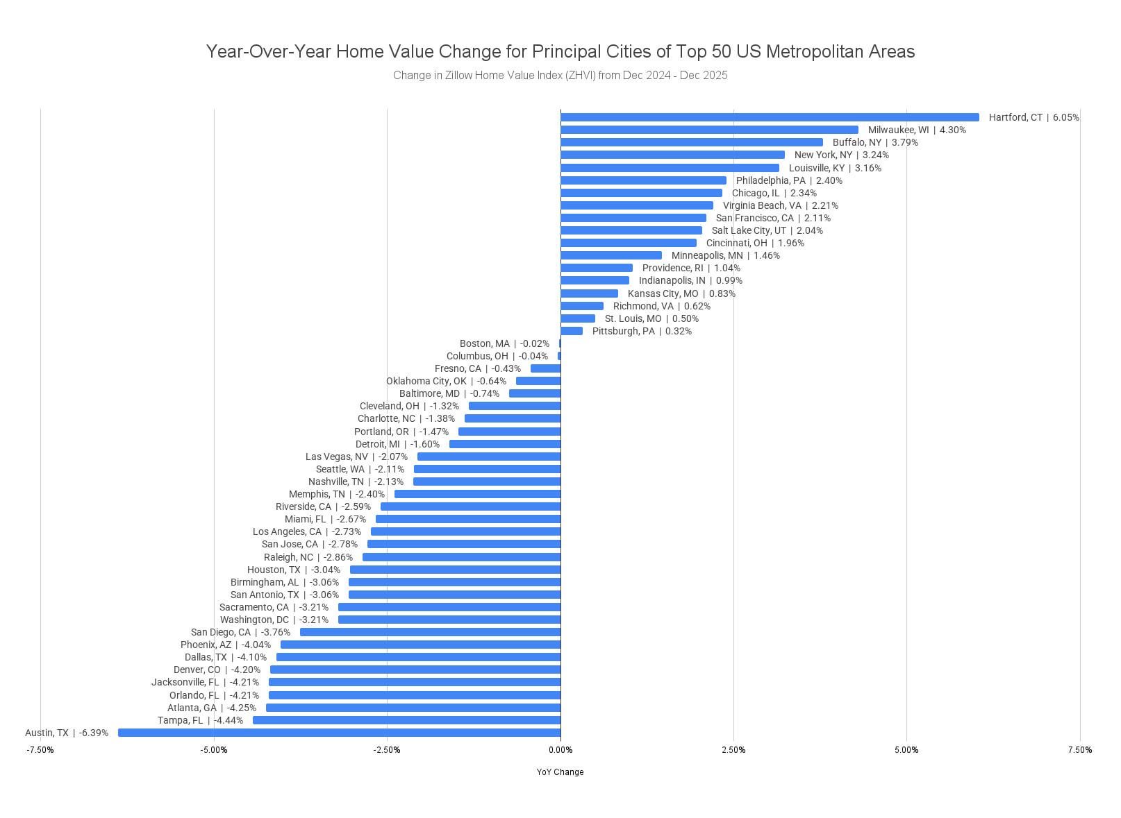Hartford feels looks to benefit from people priced out of New York and Boston Metros. It’s medium home price is less than half of Boston Metro, for example.