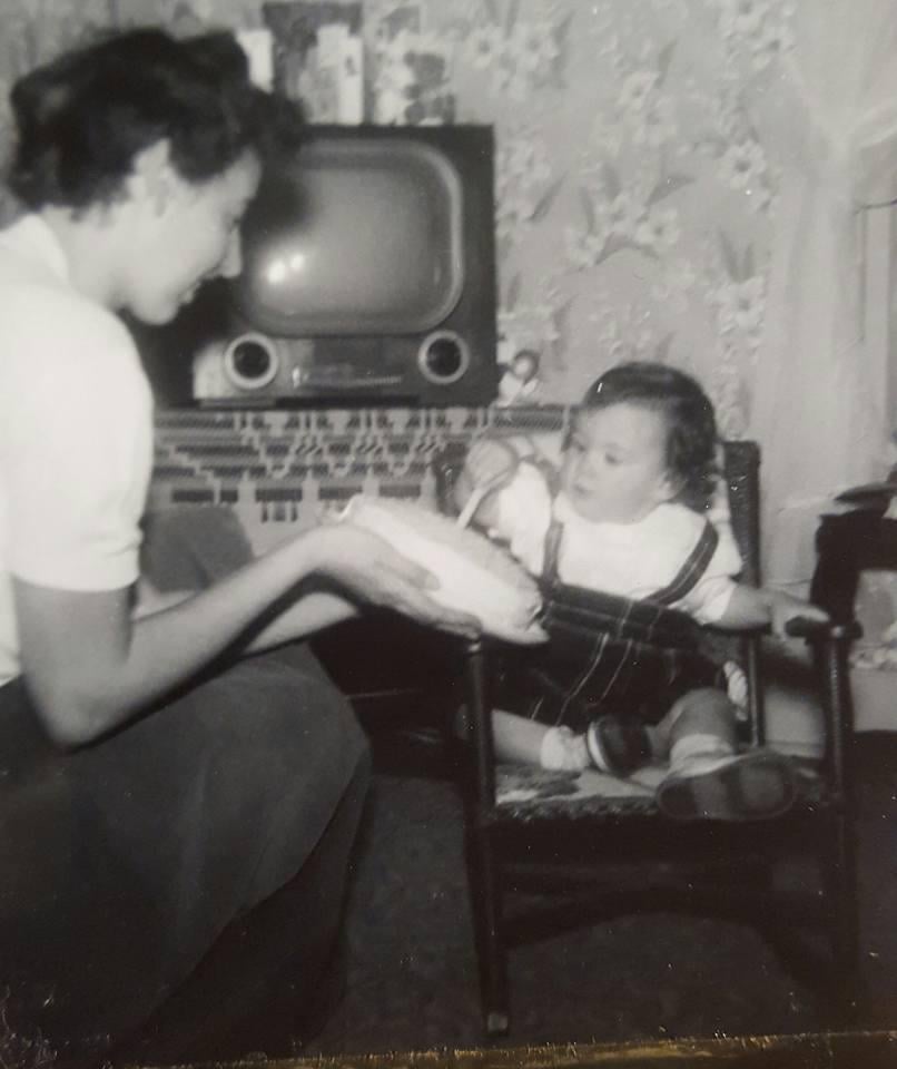 My mom and my grandma on my moms 1st birthday, 1952