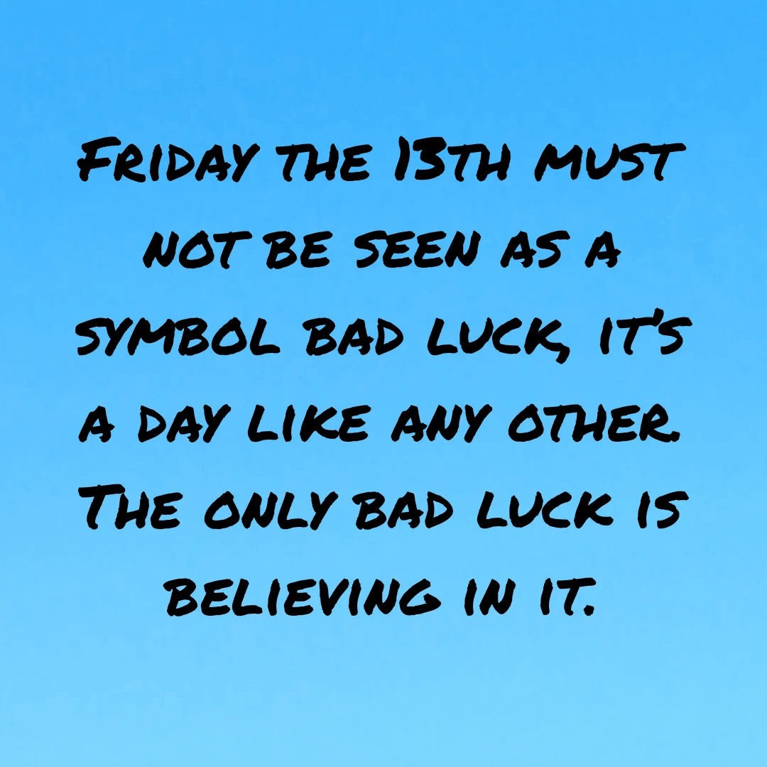 Friday the 13th must not be seen as a symbol bad luck, it’s a day like any other. The only bad luck is believing in it, and every day is a blessing. [TEXT]