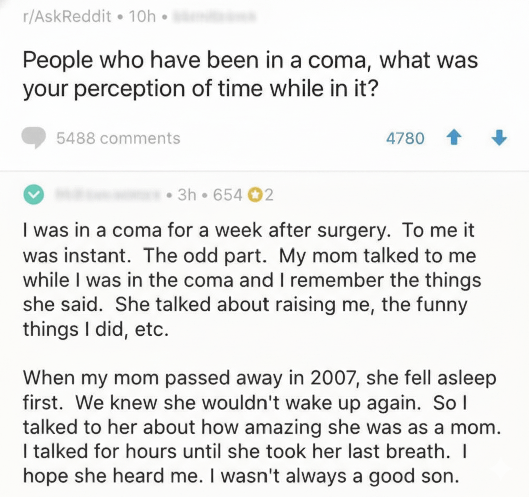 Being in a coma and my narcissist mother not shutting up.Â
