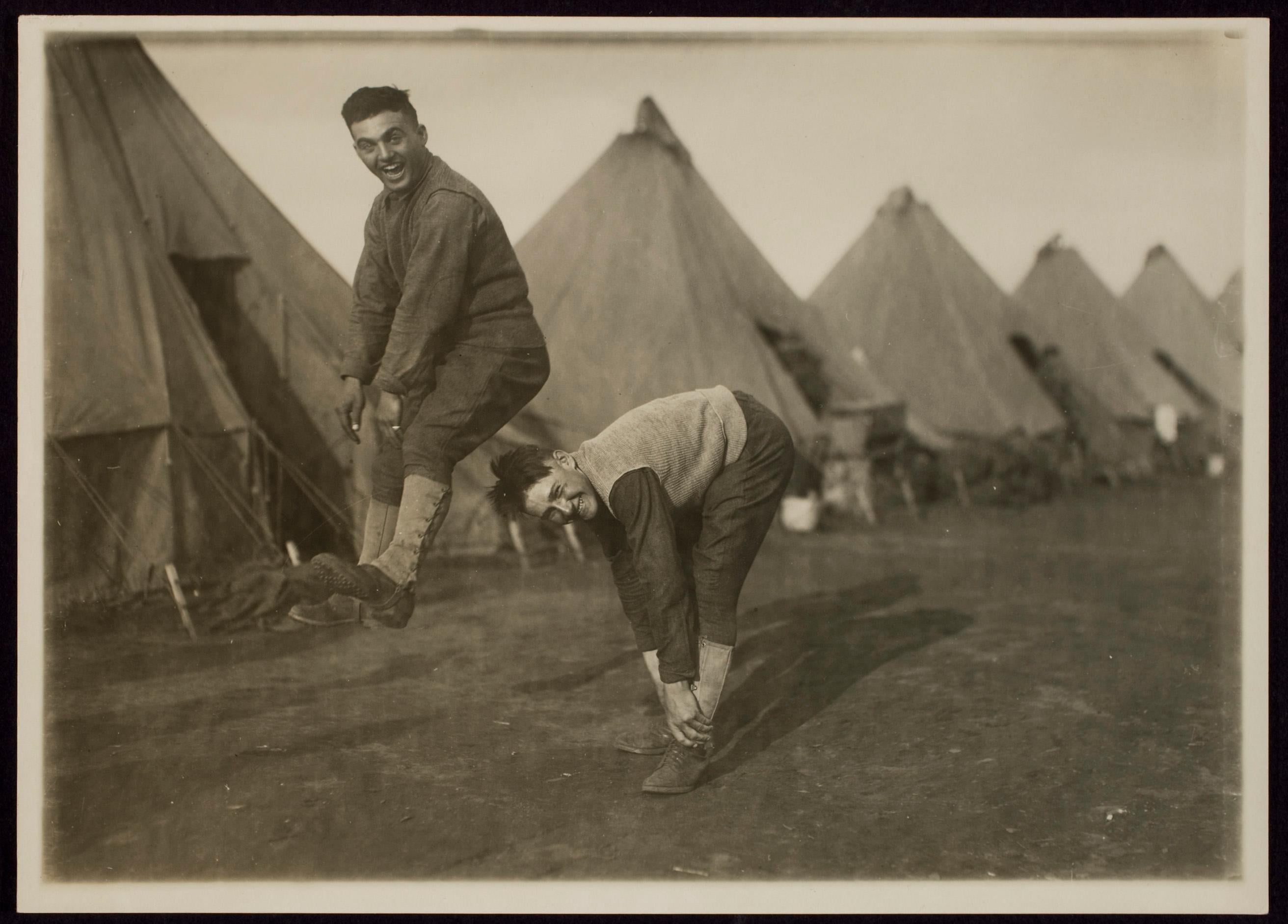 American soldiers playing leapfrog at Army training camp, 1917 [2624×1883]