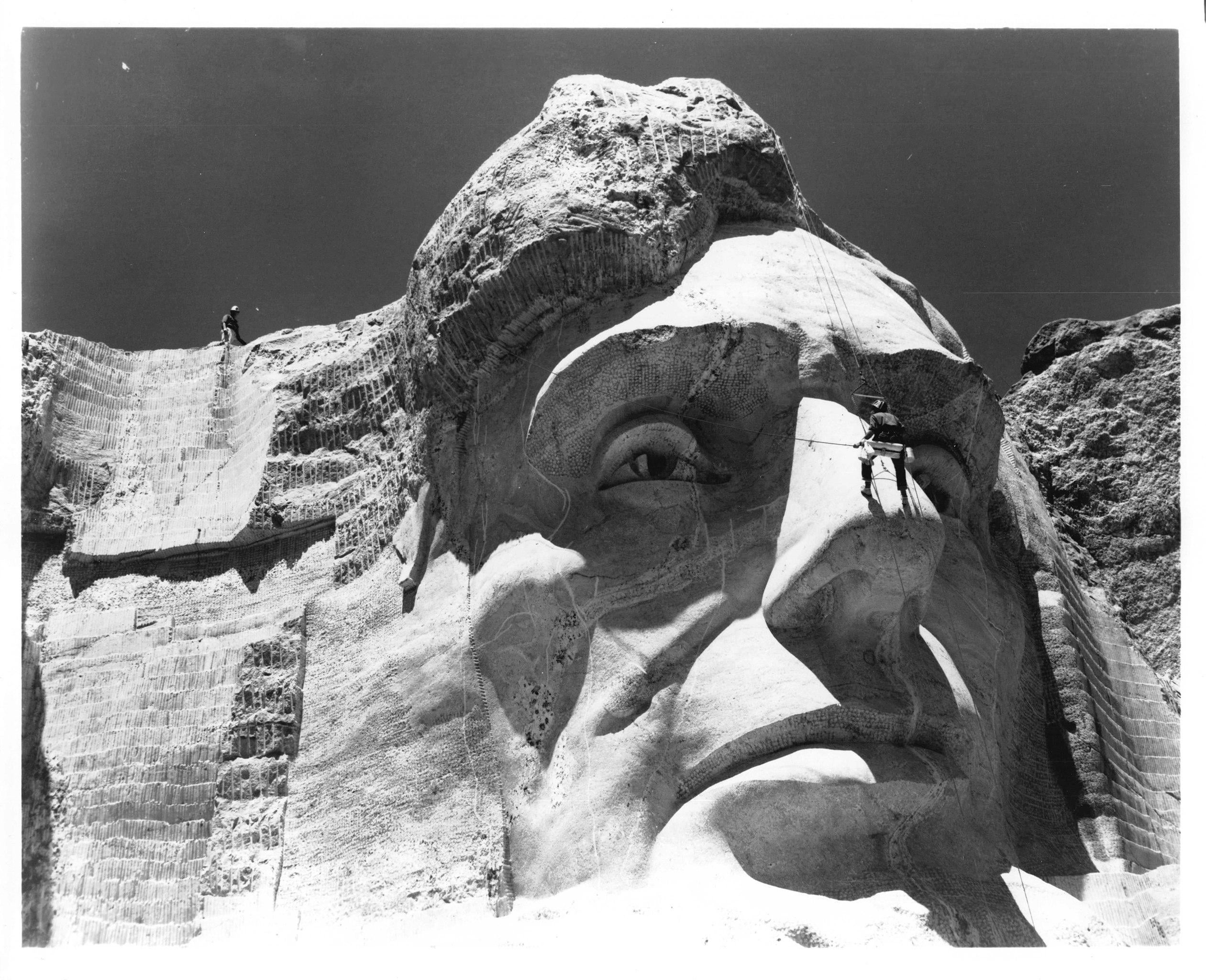 Abraham Lincoln’s face being maintained in Mount Rushmore. Lincoln’s face was officially dedicated on September 17th 1937, which was the 150th anniversary of the signing of the Constitution of the United States. (1976) [2521×2048]
