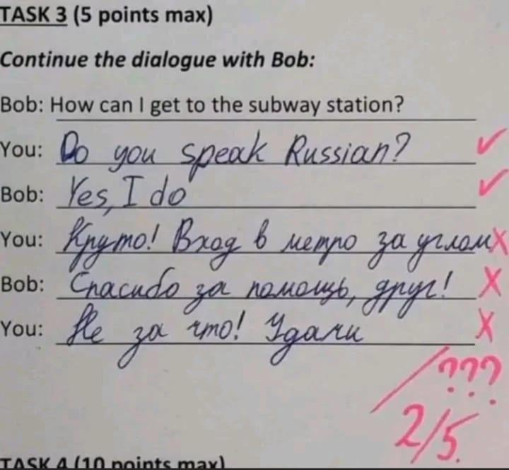 Whatever this test was trying to test, I bet it wasn’t Russian