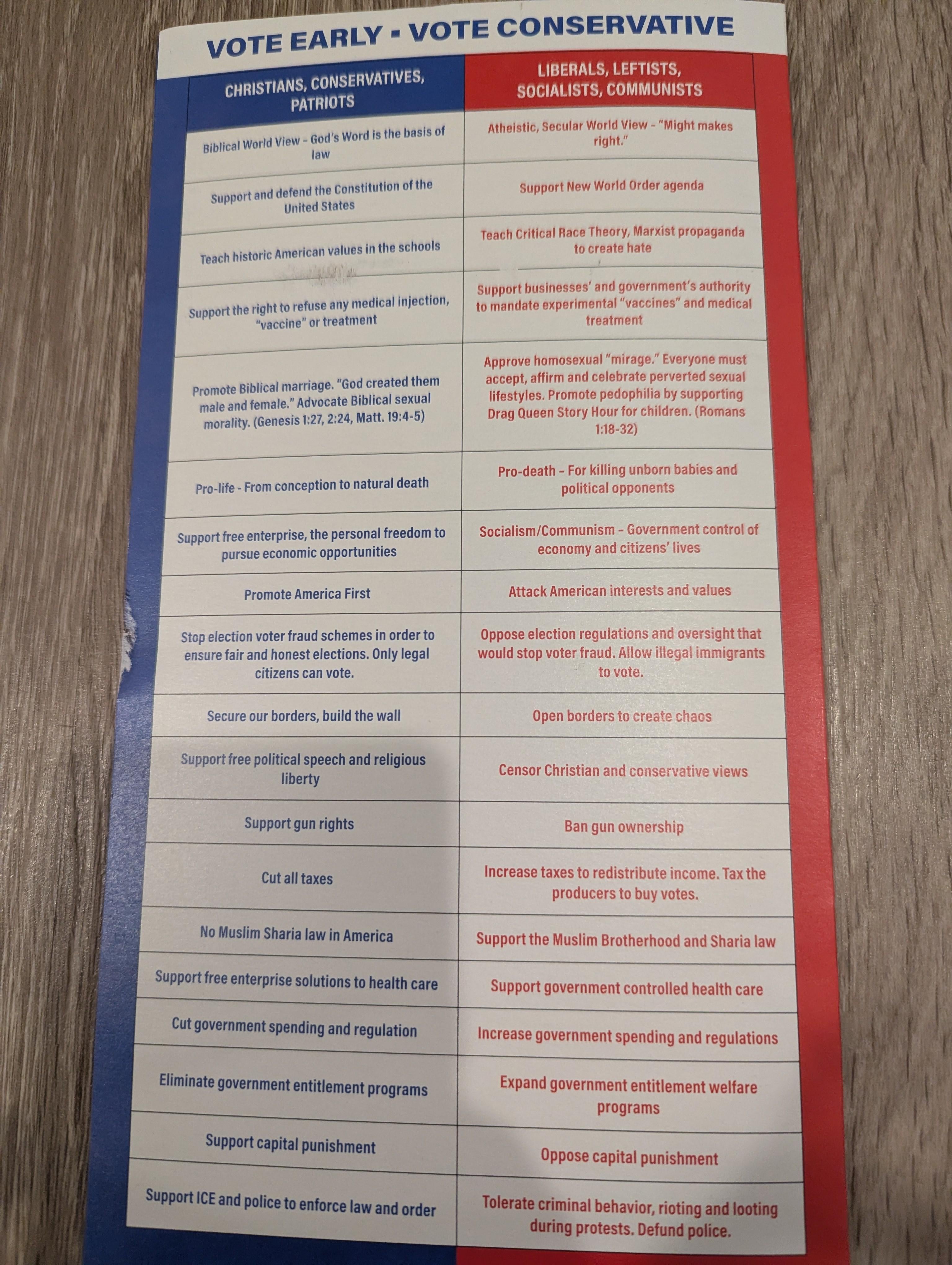 17. Among the list of everything else wrong with that flyer, why would they put the conservative stuff as blue and the liberal stuff as red?