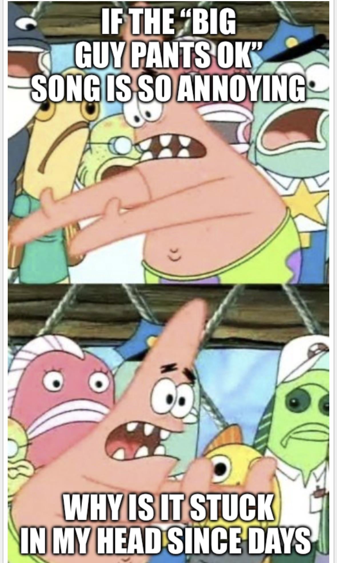 i hated the song at first and now it’s a guilty pleasure “SPONGEBOB BIG GUY PANTS OK”