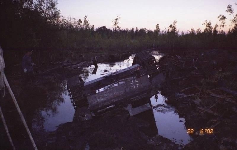 The recovery of a German Panzerkampfwagen (Pz. III J) medium tank, from a swamp in the Smolensk Oblast, Russia, c. June 2002. [800 x 509] by _Tegan_Quin