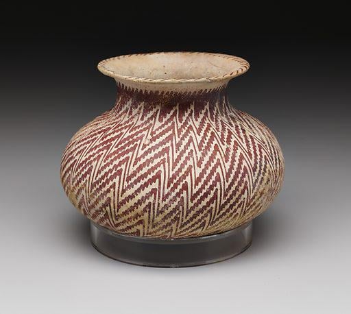 Share Facebook Twitter LinkedIn Pinterest Bluesky Threads A Hohokam ceramic jar with zig-zag pattern, from Arizona, c. 850-950 CE, now housed at the Dallas Museum of Art [512×458] by Fuckoff555