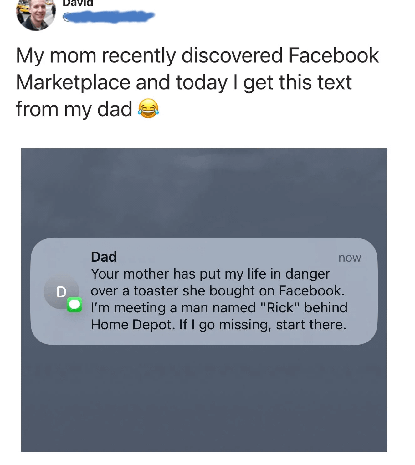 Dad is literally risking it all for a used toaster and a guy named Rick