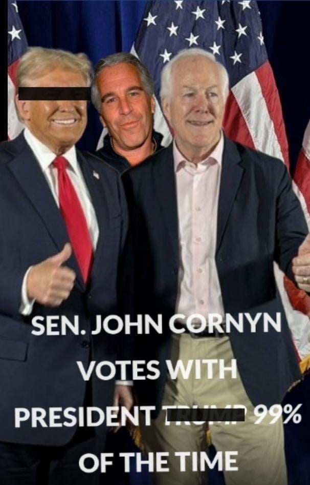 Ken Paxton will be even more protective of Trump on the Epstein stuff. Cornyn is the lesser of two evils on the republican primary.