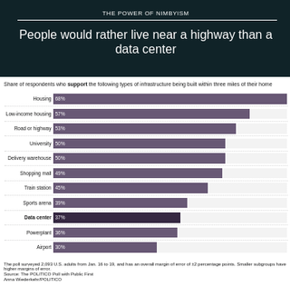 This seems like all the survey respondents work for the data centers, with such a high percentage of people who are in favor of them.
