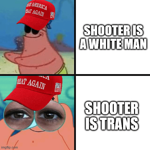 This is how it always goes and it’s exhausting. Notice the right wing media is white washing the fact that the shooter in RI had a long history of mental health issues, and had a literal fucking SS Nazi tattoo on their arm. They also supported Trump and MAGA. Their former existence is an oxymoron: a trans white nationalist that’s as far right as can be in their political opinions. Yet you won’t hear that on Fox News or from any of the grifters blaming this all on being trans. So tiring.