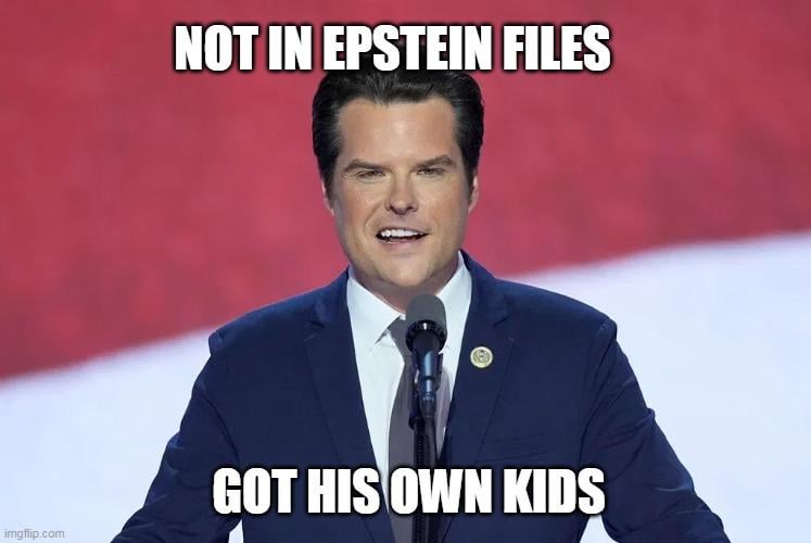 Couldn’t make the cut. Gaetz could barely handle interstate trafficking; Rapestein was international. World leaders. Royalty. Big money. Gaetz wasn’t even in his league; couldn’t even see that league. Geatz probably cried himself to sleep at night knowing he’d never get the call to the Big Show.
