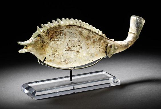 Roman glass vessel in the shape of a fish. Object dated to the 3rd-4th century CE. [564×383] by imperiumromanum_edu