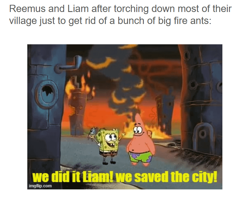 At least the ants are gone and villagers learned a valuable lesson about letting reemus and liam handle pest control
