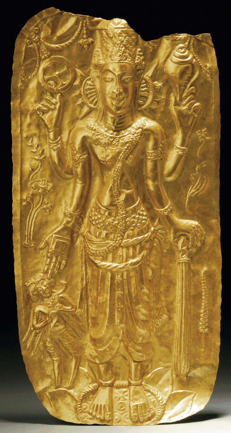 A gold plaque from Java, depicting Vishnu and Garuda. 9th century CE, now housed at the National Museum of Indonesia [757×1416]