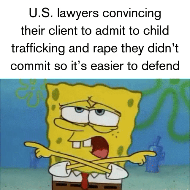 1. “You see, my client is innocent bc he was on Epstein Island together with our almighty and beloved ~~emperor~~ president Donald Trump! That means he can’t be a bad person since everyone who is friends with Mr Trump is a saint, as we all know”