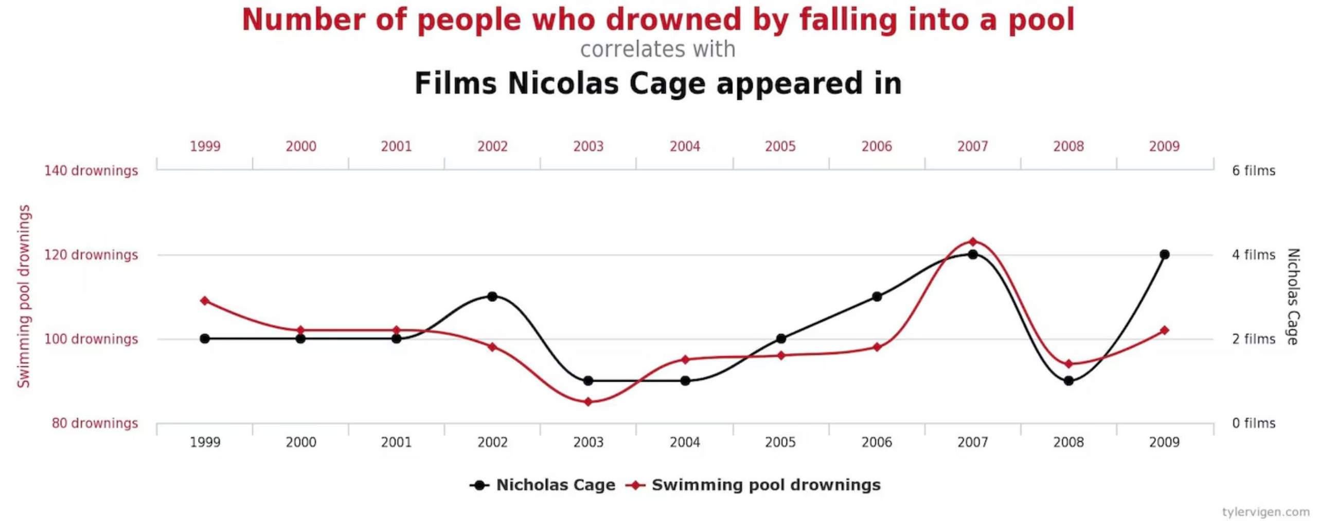 this is a poor example of a spurious correlation. a clear causal relationship is apparent