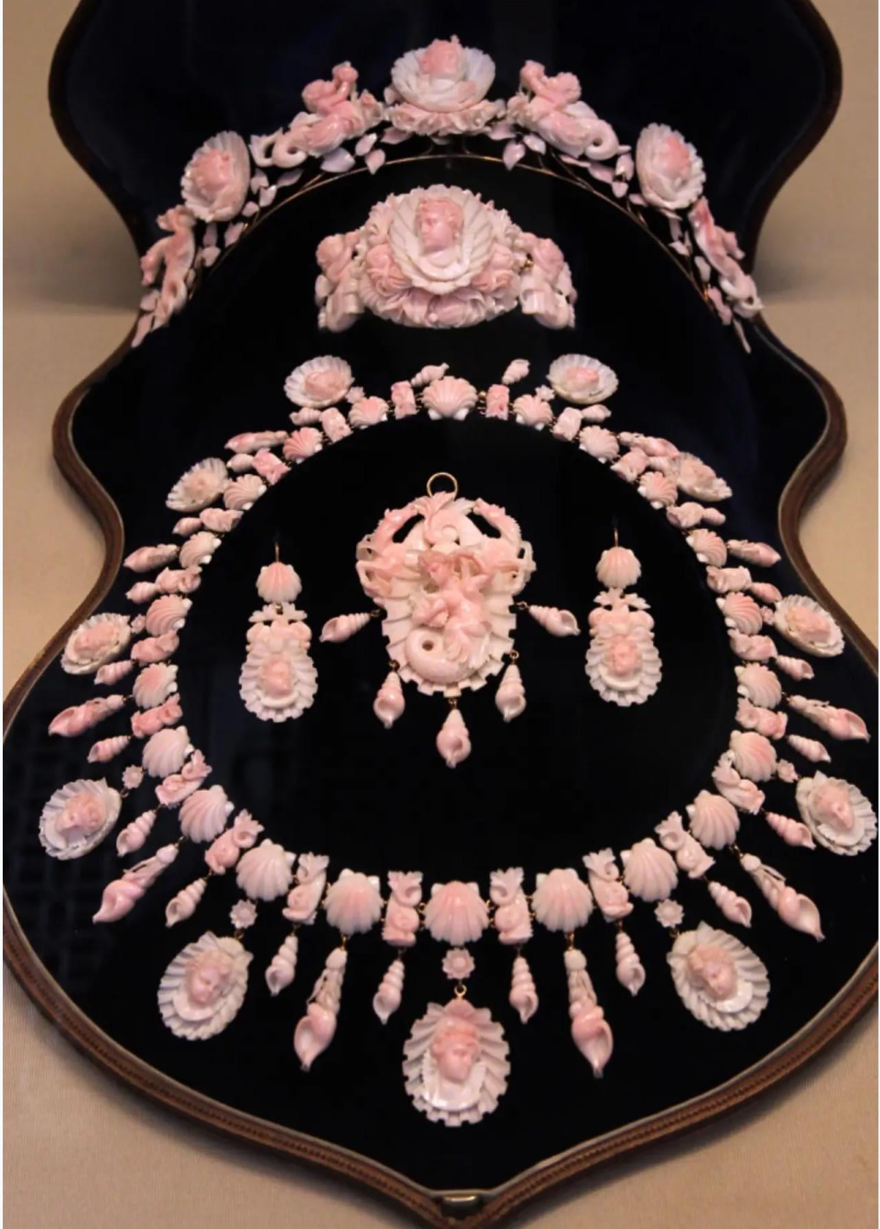 Set of conch shell jewellery, from Naples circa 1860. British Museum[1283×1683]