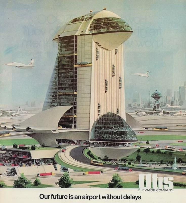 Spectacular design . I have been unable to find a higher res unfortunately . Berkey's work is great but it's mainly sci-fi . Presumably they have a large window cleaning department at this airport . Also , is elevator availability a major rate limiting factor at traditional airports ?