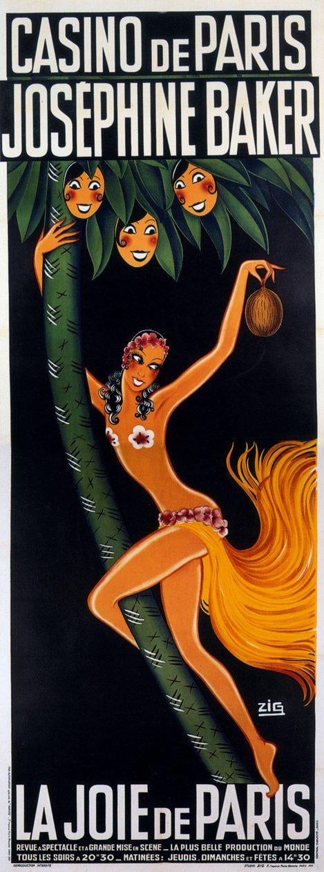 Poster advertising “La Joie de Paris” dance show featuring the French-American singer, dancer, actress, resistance agent and civil rights activist Joséphine Baker; made by Louis “Zig” Gaudin (1900-1936), 1930