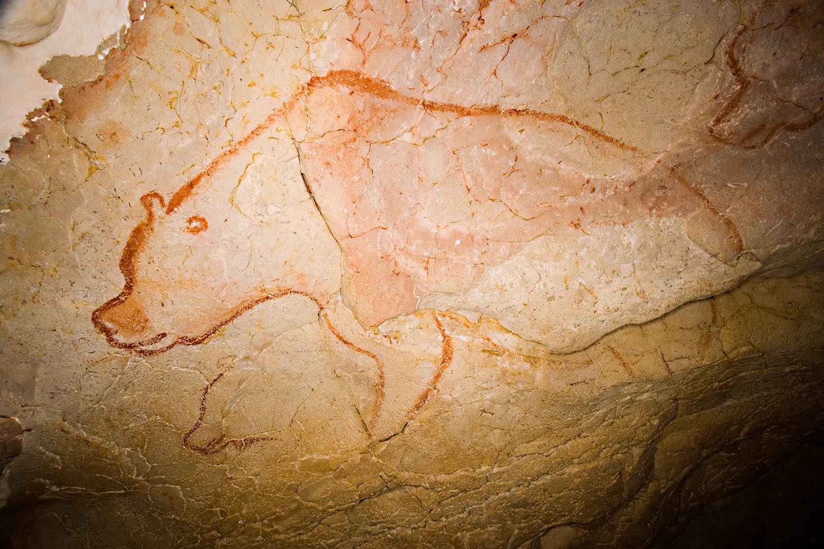 This painting of a cave bear, at the Chauvet Cave in France, was drawn with 14 lines around 32,000 years ago. The artist used a technique known as ‘stump-drawing’ – the use of fingers or a piece of hide to paint the muzzle and to emphasize the outlines of the head and forequarters [1620×1080]