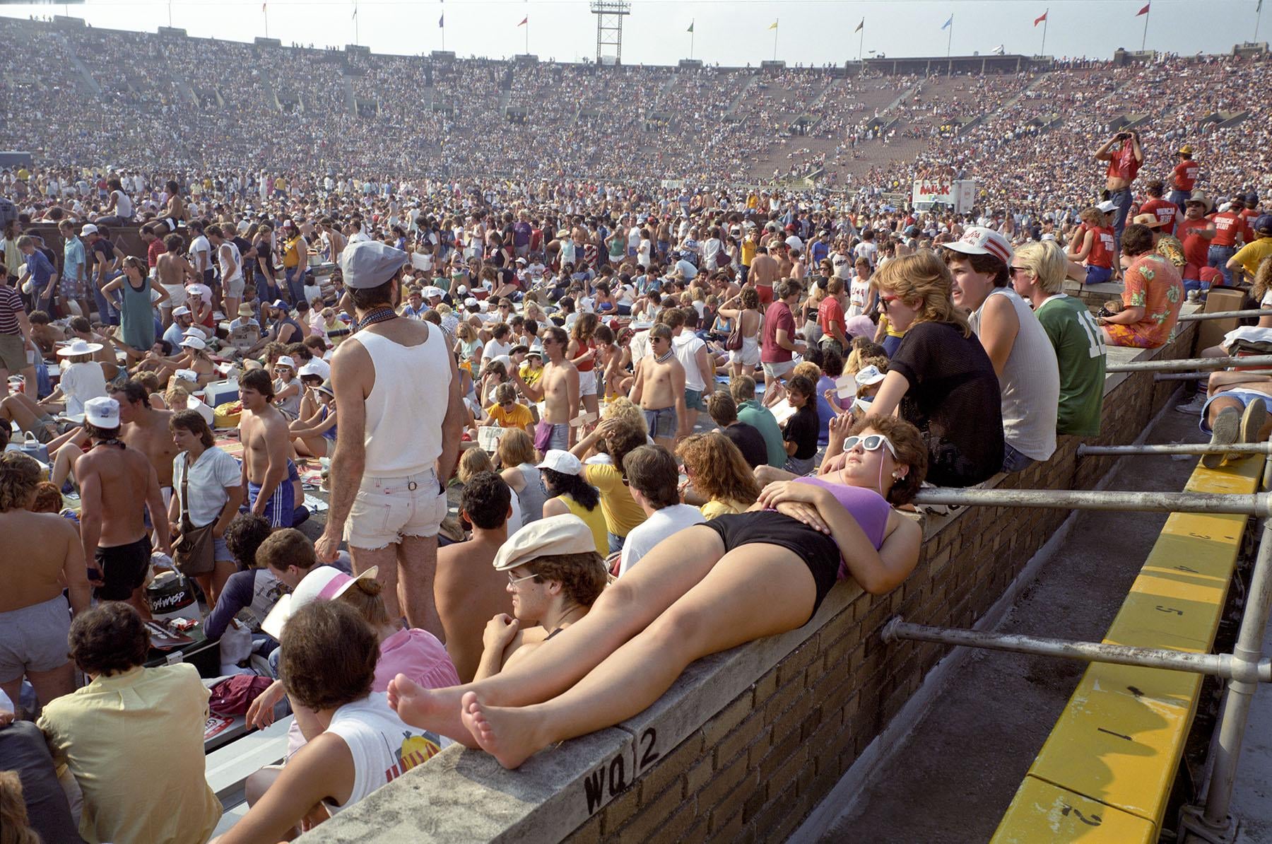 Imagine being so committed to Live Aid you’re sunbathing on concrete like it’s a five star resort. That crowd is basically the original “I was there” flex.