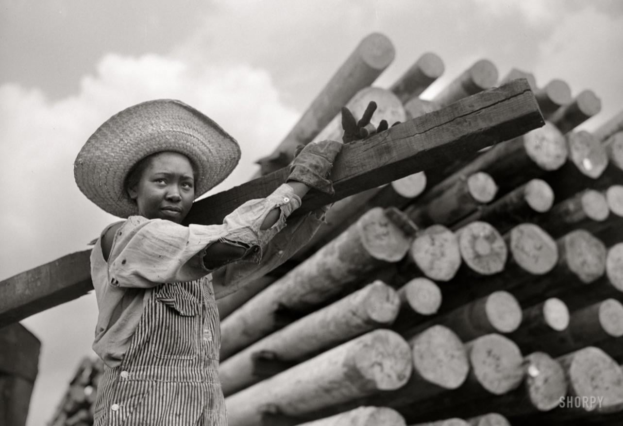 “Woman worker at the International Creosoting plant,” was taken by John Vachon in May 1943 in Beaumont, Texas.