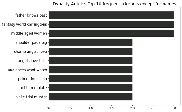 I analyzed 10 articles (text length 109800) on the 1980s TV show Dynasty.