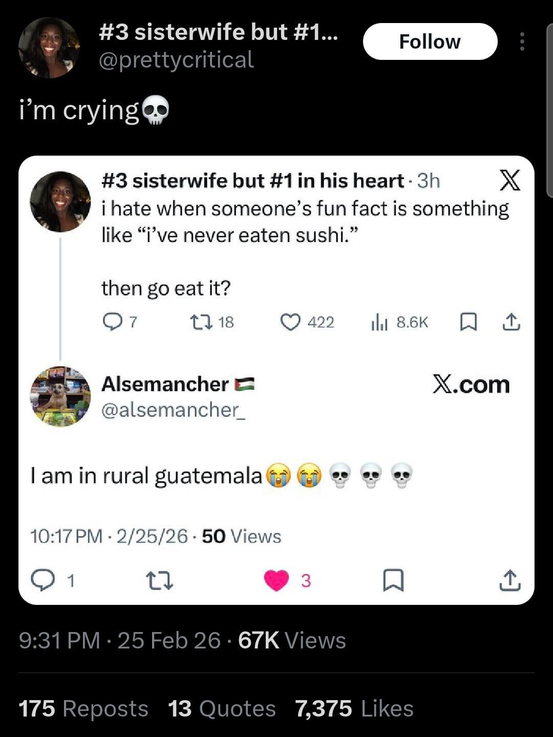 We got rural Mississippi and mfers ain’t eating sushi there either