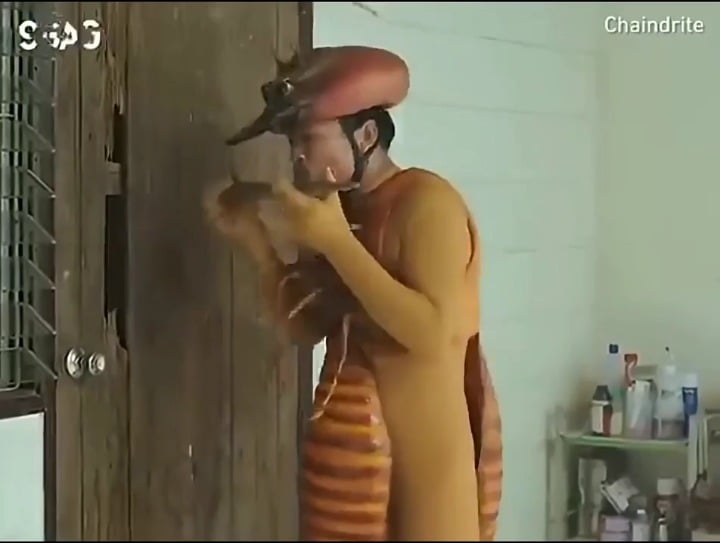 Theres an entire series of commercials. Also the cockroach guy is a famous actor in the region. This is the SAME GUY from the Stop Drinking commercial
