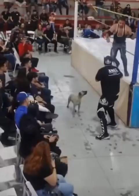 I don’t know why I thought that dog was going to bust out a hurricanarana of its own.