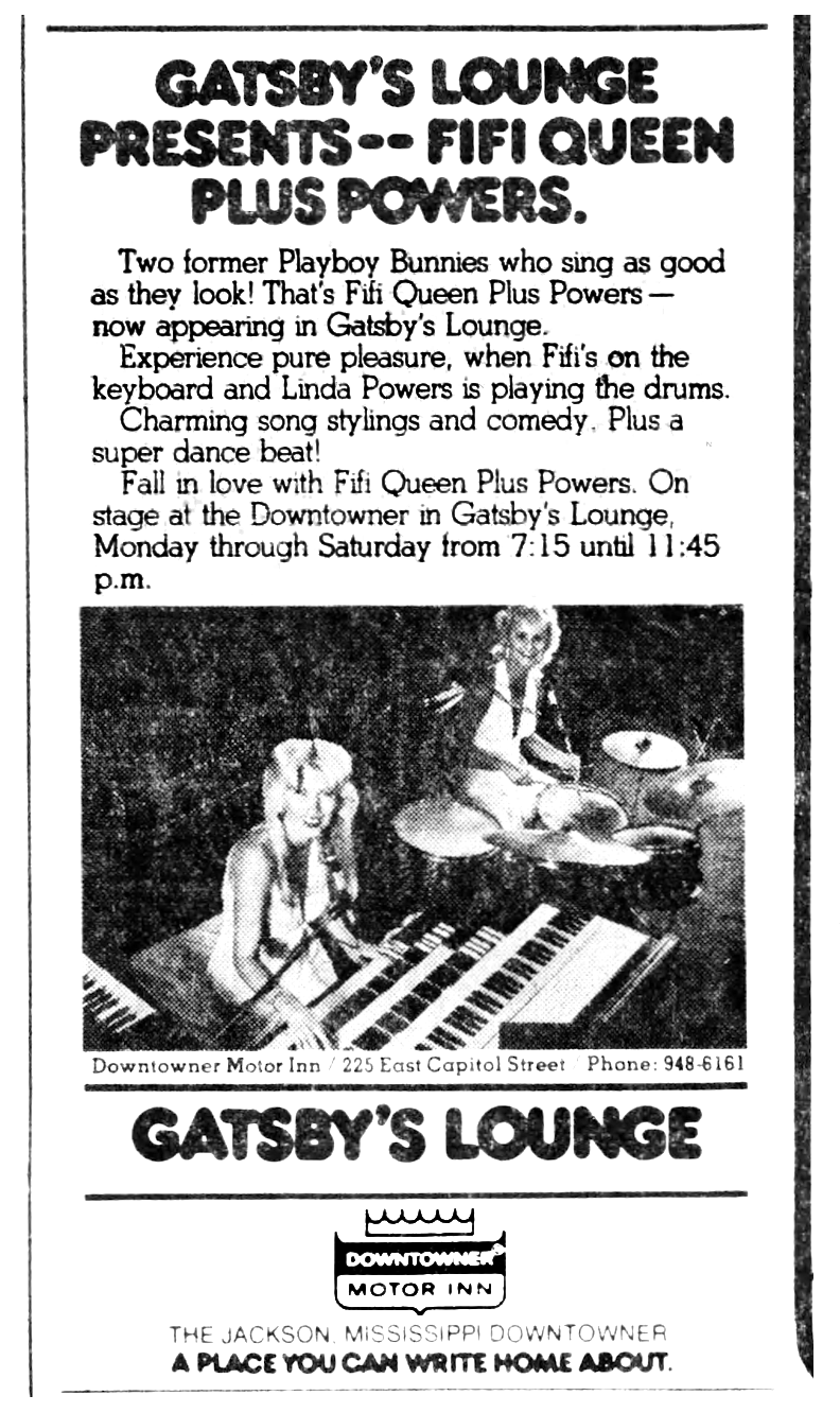 Playboy Bunnies Fifi Queen Plus Powers appearing at Gatsby’s Lounge – Downtowner Motor Inn – Jackson, MS (1979) by RetroMan70s