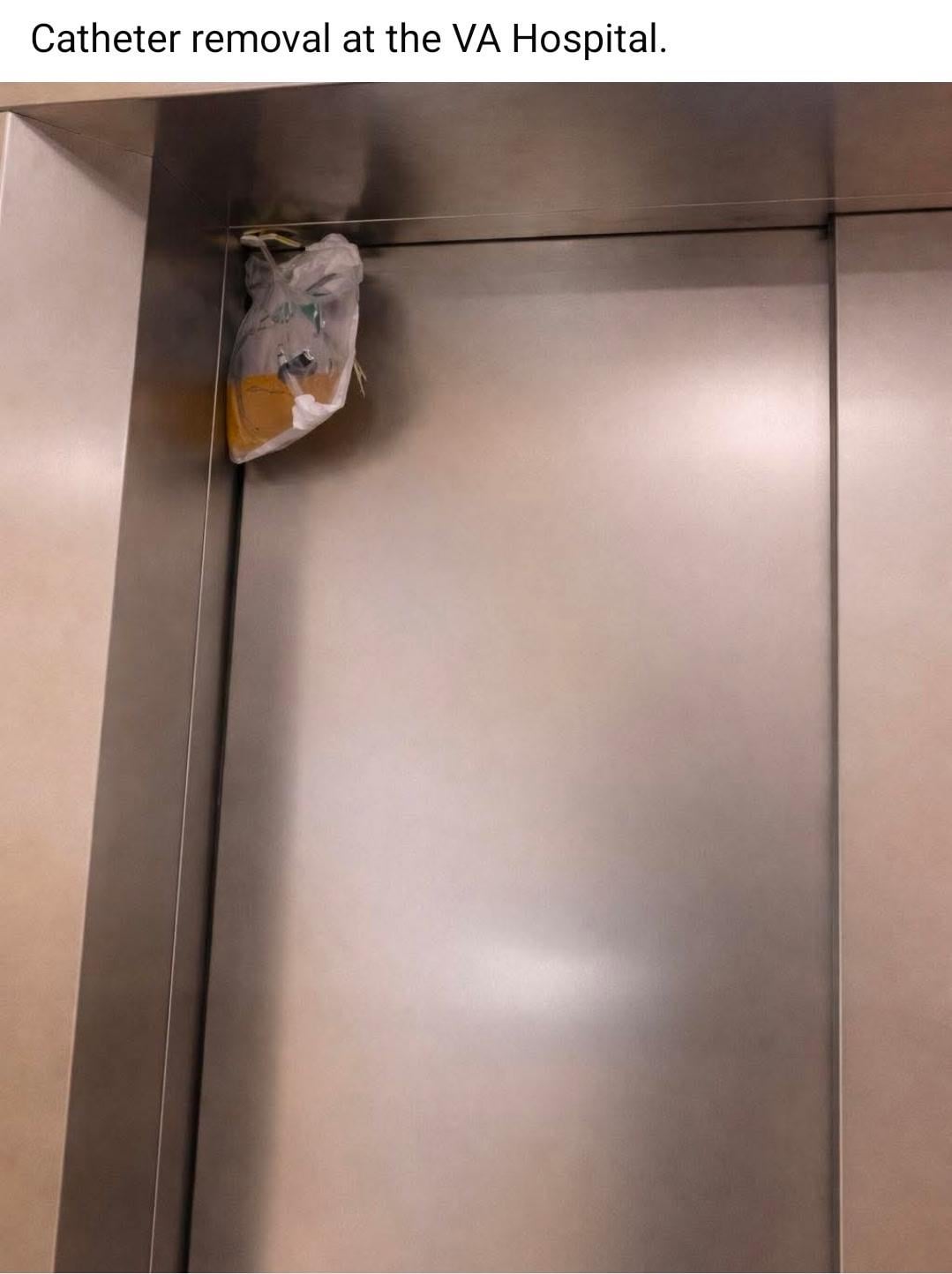 Assuming that catheter bag was connected to someone the other side of that elevator probably isn’t very funny.