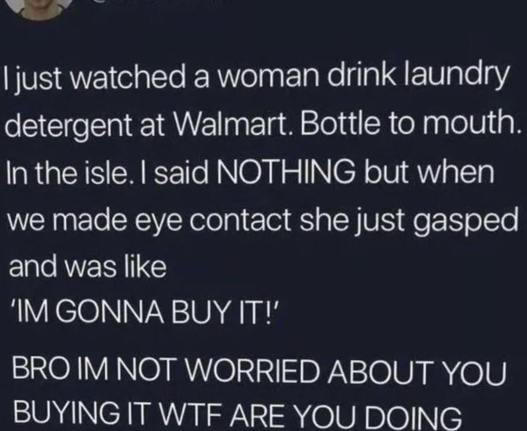 I keep saying this (jokingly), Walmart is a portal to other worlds and is the middle ground between the physical and supernatural where anything is possible and every intrusive thought exists.
