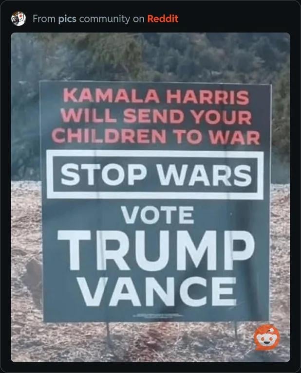 It was all lies. Most of anti Kamala rhetoric was just anti black rhetoric. Although I myself did not find her to be particularly competent and there were many valid concerns with her, war was definitely not one of them.