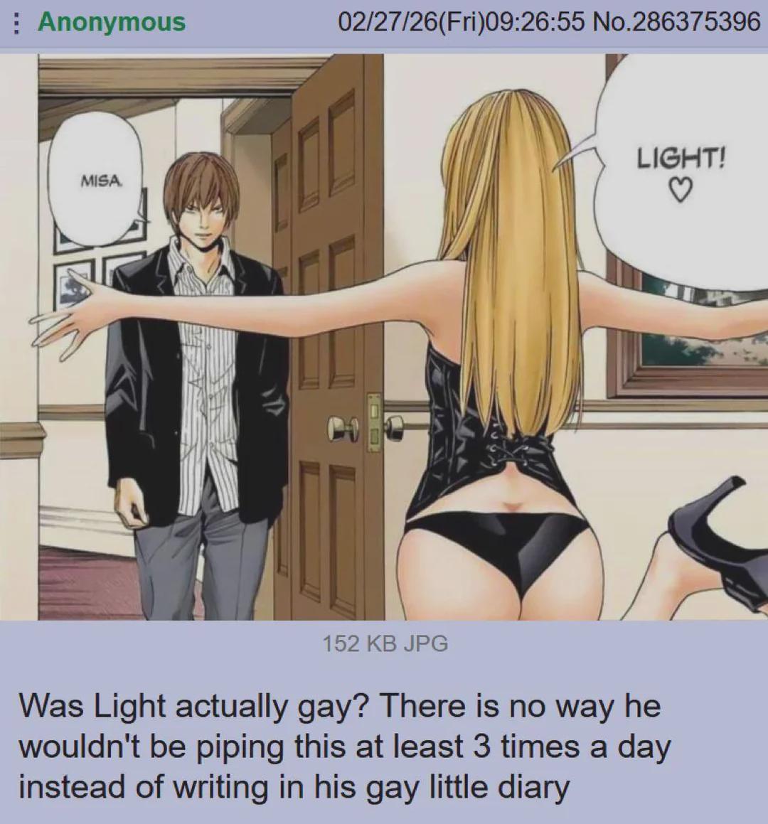I don’t care if she’s kinda annoying and stupid, he’s definitely gay for L