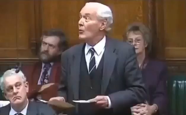 Not just any former cabinet minister. The late, great Tony Benn. A politician with an actual spine.