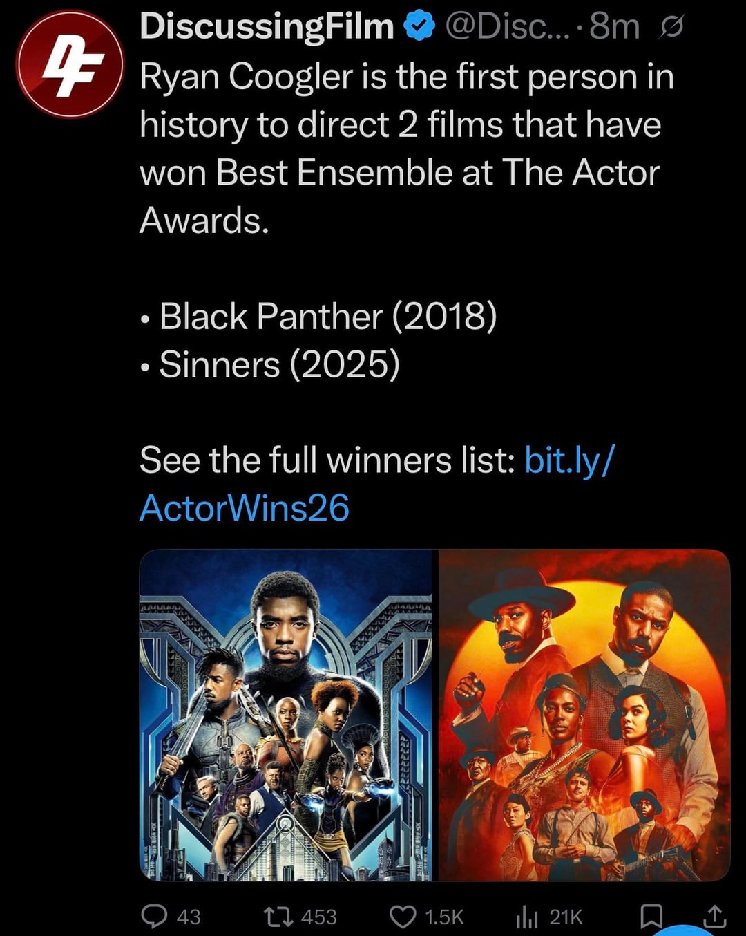 Fuck yeah! They all deserve every award they get. I just watched the Black Panther and Sinners again 2 days ago. Fucking love to see it!