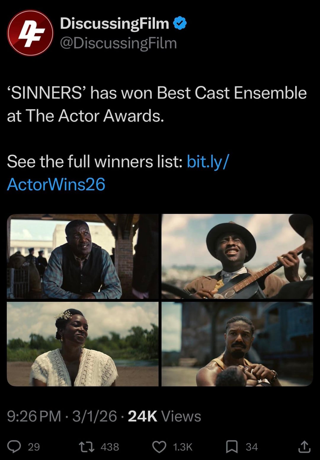 Look I loved Sinners but does it feel gross to anyone else that the BAFTA incident seems to have kick started it’s Oscar momentum?