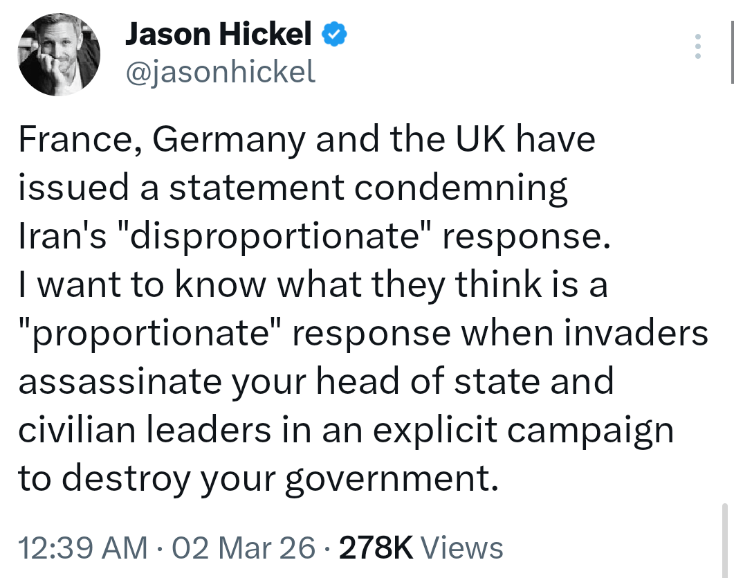 I mean, doing the same thing to the US and Israel would be proportionate wouldn’t it?