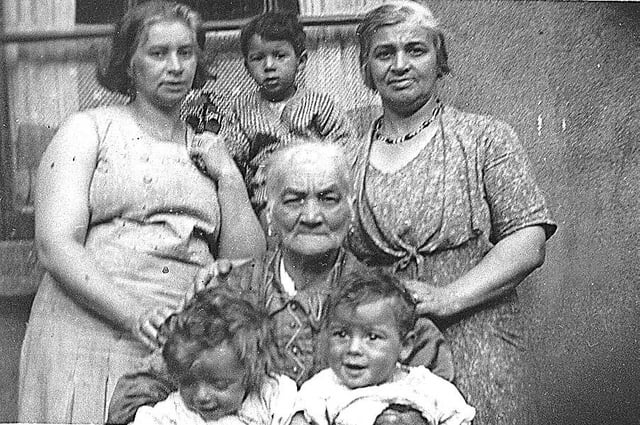 Back row: Great great grandma Bobba (Esther Freda Nesha) Great great Grandpa Abraham Zak. Joe Kaiserman and his father-in-law, whose first name is unknown, and his wife in front on the right, whose name is also unknown at the moment, are in the front.