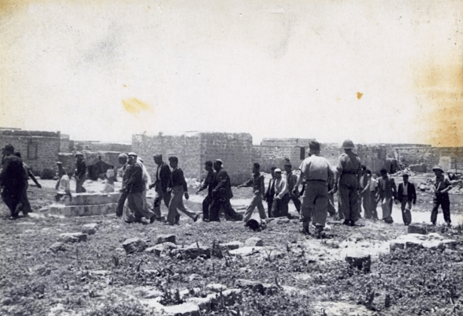 Israeli Haganah soldiers with detained Palestinians on 23 May 1948, after the village of Tantura surrendered. Haganah forces reportedly killed 200+ unarmed Palestinians and buried them in a mass grave under what is now a parking lot on Dor Beach. [954 x 650]