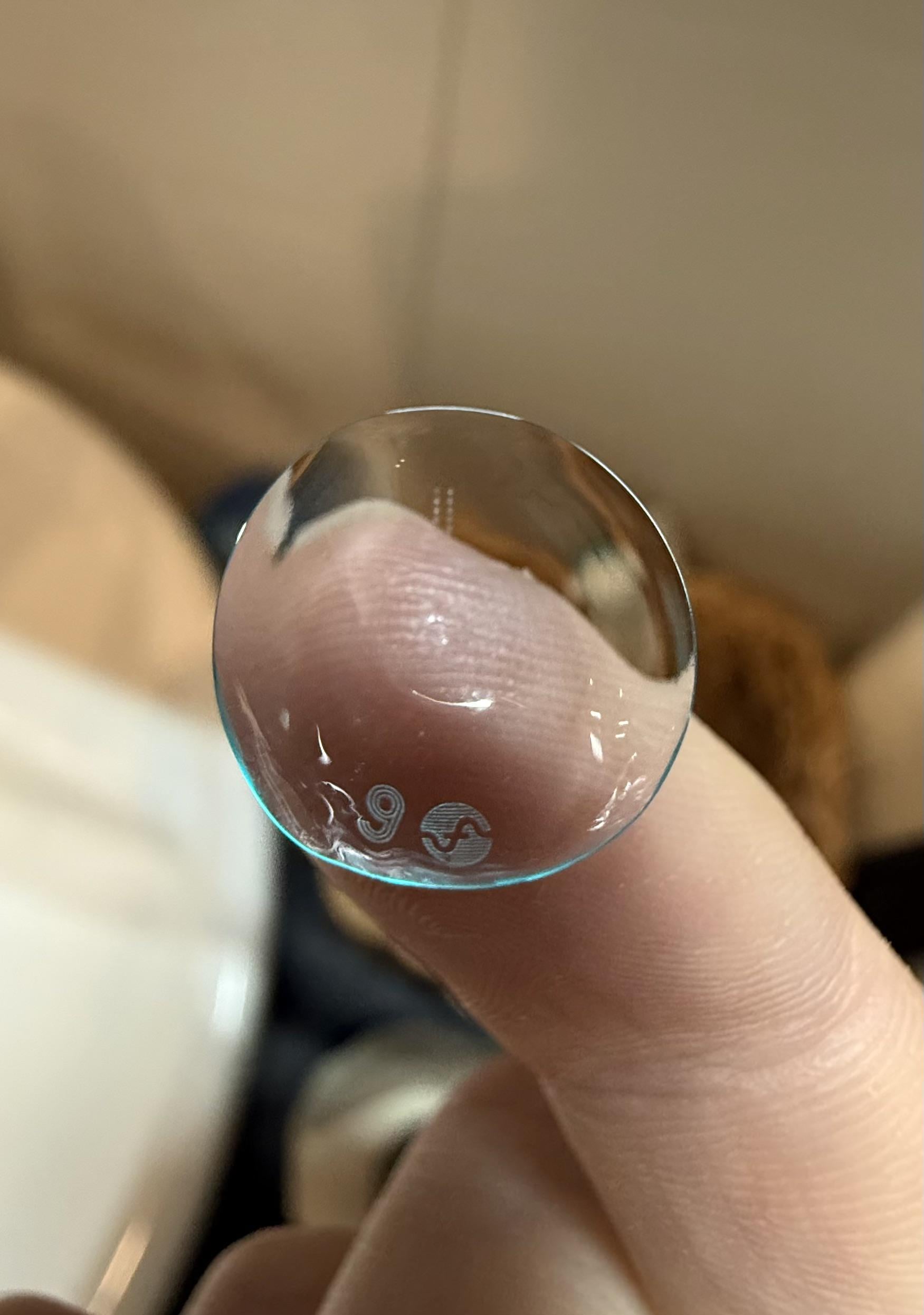 Was always told contacts had writings on them but never saw them even when I wore them. Pretty sure mine didn’t have it.
