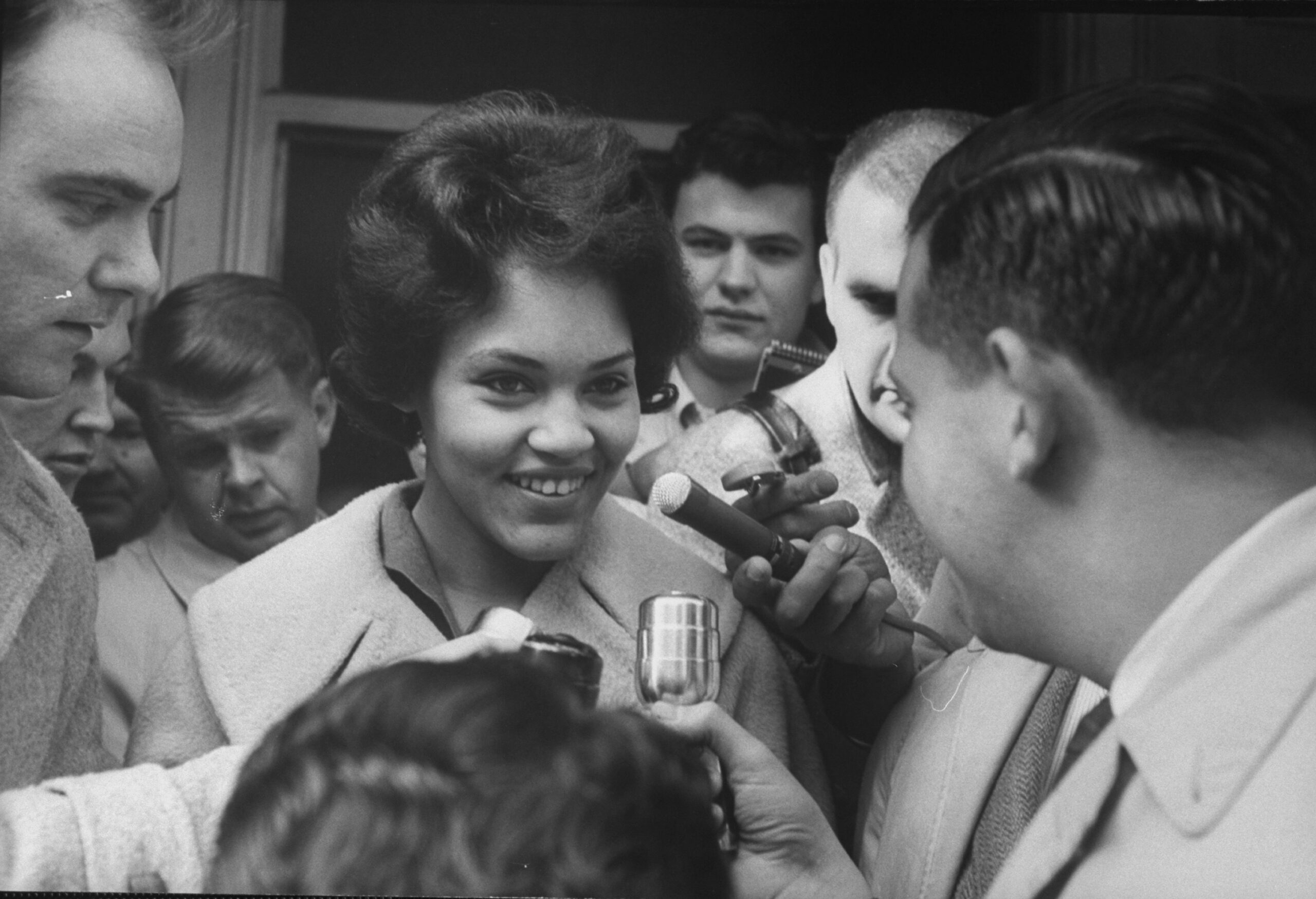 Charlayne Hunter is interview as she arrives to her first day of classes in the newly integrated University of Georgia, 20 of January 1961 [1748×2560] by Electrical-Aspect-13